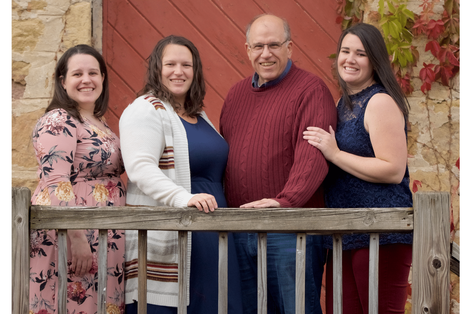 Greg Gerber with his daughters, from left: Kristin, Elizabeth and Rebecca, in fall of 2020